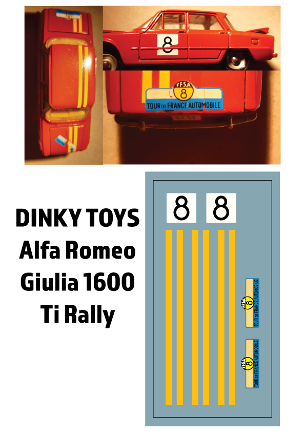 Restauration Légendaire : Décalcomanies DINKY TOYS Alfa Giulia 1600 Ti Rally