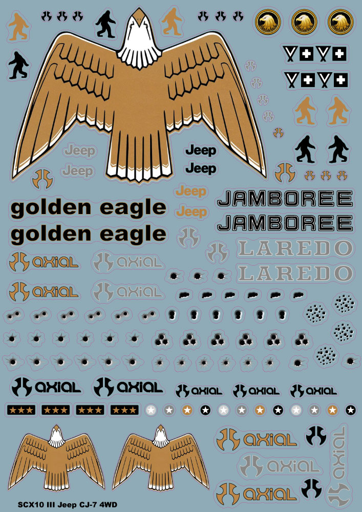 Planche Stickers Golden Eagle : L’Esprit Vintage pour Axial SCX10 III Jeep CJ-7