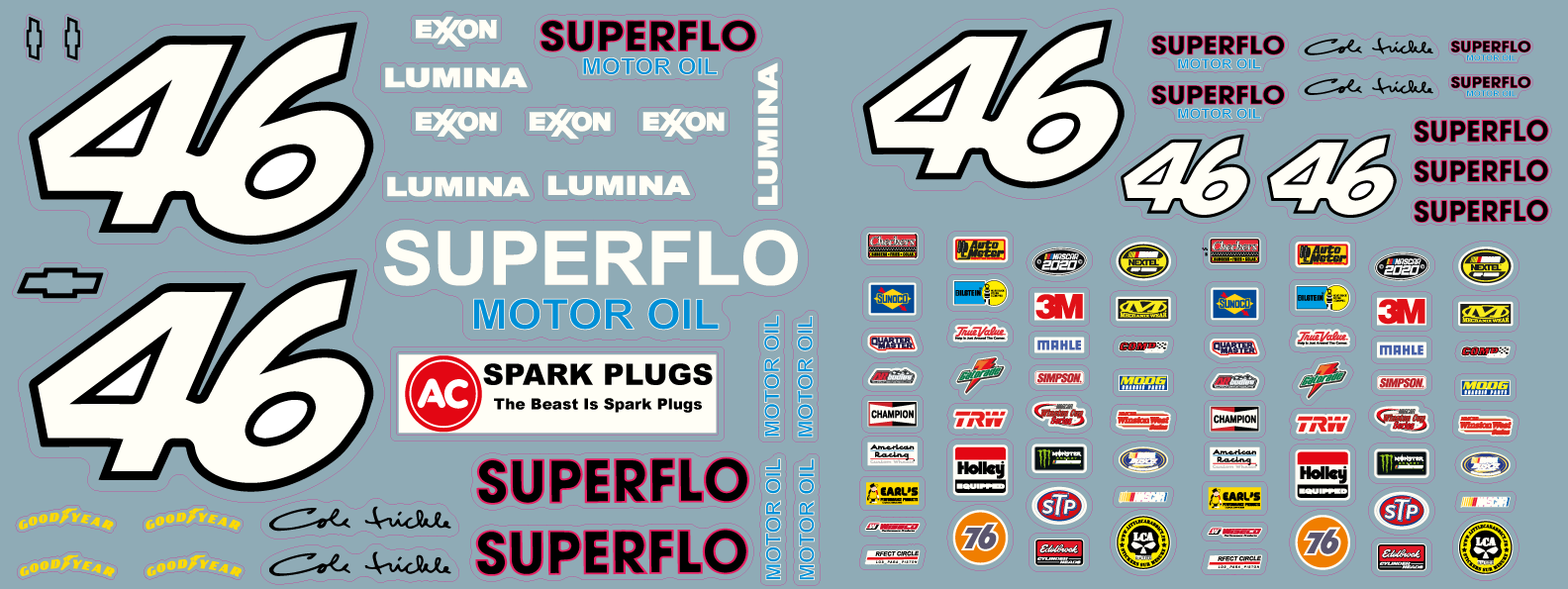 Plongez dans l’adrénaline de la NASCAR avec notre planche de stickers Superflo, inspirée du film culte Jours de Tonnerre. Conçue avec une haute précision, cette planche est l’atout indispensable pour répliquer la célèbre monture de Cole Trickle sur vos modèles réduits ou supports personnalisés.